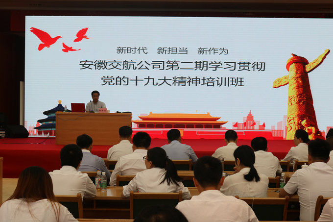 为深入学习宣传贯彻党的十九大精神,引导全体干部职工以习近平新时代中国特色社会主义思想武装头脑、指导实践、推动工作,6月22日下午至6月23日上午,安徽交航公司在机关3楼会议室举办了第二期学习贯彻党的十九大精神培训班。