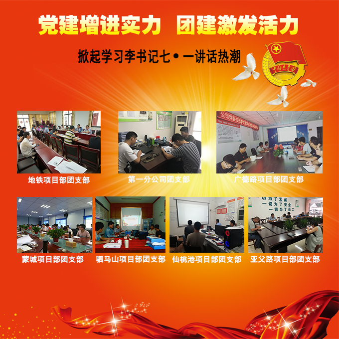 青春,是人生最美的时光。青年,是国家的未来和民族的希望。团组织是先进青年的群众组织,是党的助手和后备军。在七一到来之际,公司各级团组织坚持党的领导,“讲政治 守规矩”深入学习李书记重要讲话精神,保持团的先进性,为谱写好建工梦交航梦贡献智慧与力量,让青春在为祖国,为企业奉献中焕发出绚丽光彩!