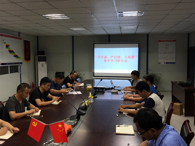 6月21日,沱浍河项目部召开“讲忠诚、严纪律、立政德”集中学习研讨会,会议由支部书记向海兵主持,项目部全体人员参加。
