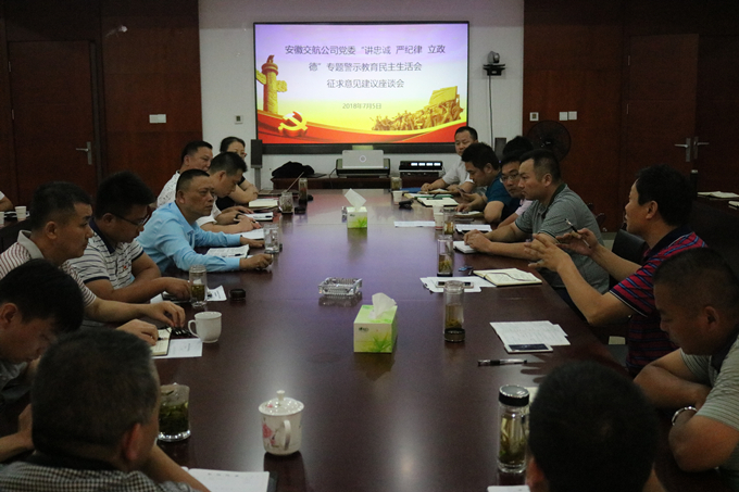 7月5日上午,根据集团公司党委《关于以鲁炜案徽商集团窝案等案件为反面教材开展“讲忠诚、严纪律、立政德”专题警示教育的安排意见》(建工党发〔2018〕51号)要求,安徽交航公司党委在9楼会议室召开了“讲忠诚、严纪律、立政德”专题警示教育民主生活会意见建议征求座谈会,听取广大党员干部和职工对公司领导班子及班子成员在“讲严立”专题警示教育方面的意见和建议,为开展“讲严立”专题警示教育民主生活会做好充分准备。公司党政领导班子成员,机关各部门负责人正职、副职(主持工作),在肥分公司、项目部班子成员,部分职工代表参加了会议,党委书记、董事长、总经理李世龙主持会议。