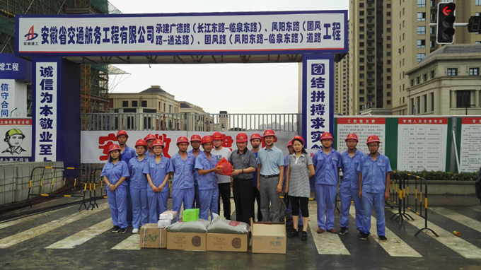许总一行来到施工现场,为正在作业的项目部职工送上慰问品,他仔细查看工程项目建设情况、夏季防暑降温工作开展情况。随后在项目驻地召开座谈会,询问并听取了项目职工关于工程进度、财务报销、材料领用发放、成本核算、二次经营等工作汇报,许总结合集团“大宣讲”活动和“讲严立”专题警示教育活动对下一步如何落实各项生产计划给予指示,要求项目部提高执行力,力争高质量按期履约,在合肥市瑶海区打造安徽交航品牌形象。他同时强调项目部应在抓好生产的同时,切实做好高温季节的防暑降温工作,提高安全生产防范意识,积极维护和保障一线工人权益。