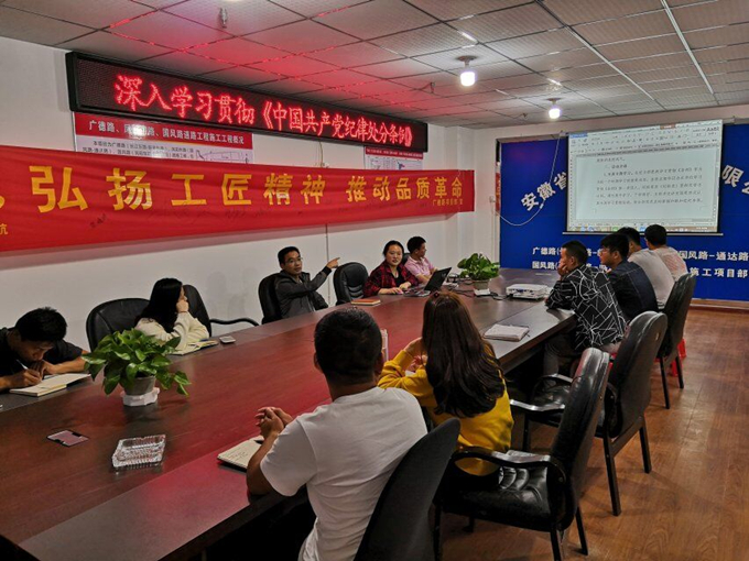 10月9日,广德路项目部积极响应上级要求,召开了党支部扩大会议,组织项目部全体职工认真学习新修订的《中国共产党纪律处分条例》。