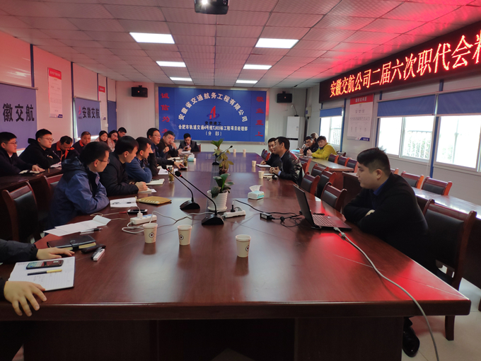 2019年3月13日上午11:00,合轨项目部组织项目部全体员工召开学习安徽交航公司二届六次职代会精神宣贯会,专题学习职代会的重要精神。安徽交航公司副总经理侯力参加会议。