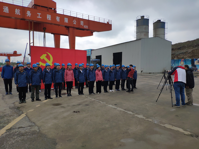 “我志愿加入中国共产党,拥护党的纲领,遵守党的章程,履行党员义务……”。活动中,项目全体员工在侯总的带领下,高举右手,高唱《我宣誓》,发出铮铮誓言。
