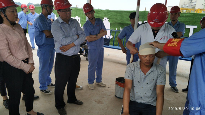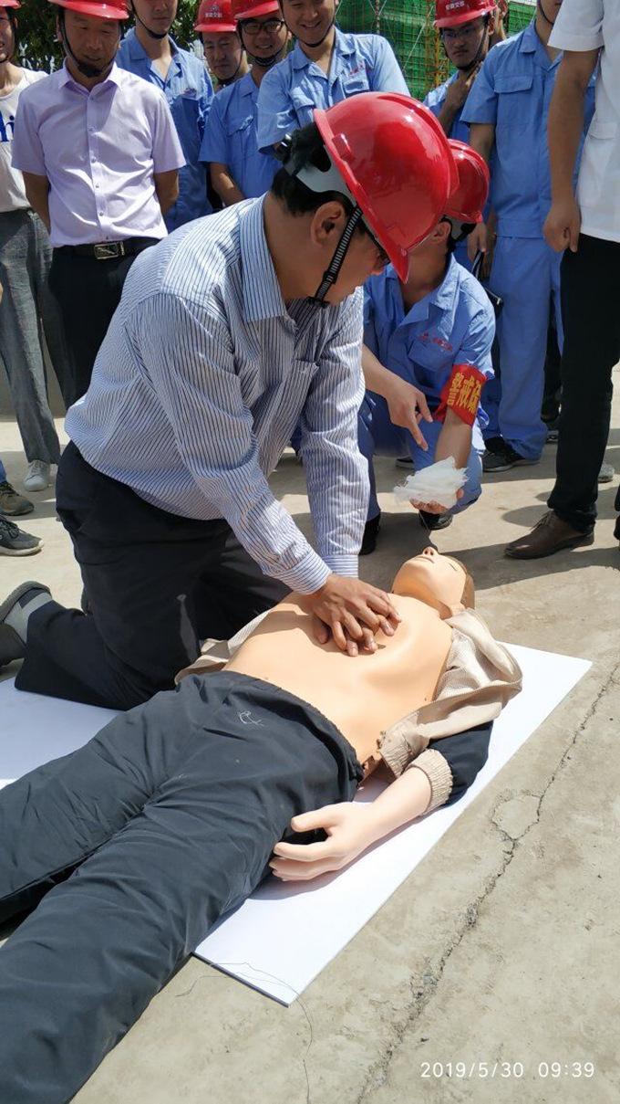 最后由黄山市第三人民医院主任医生为我们指导、示范了心肺复苏和头部包扎的急救手法,出席现场活动的公司领导和所有安全员分别进行了试练习。心肺复苏和头部包扎是施工现场发生安全事故最基本的急救手法,今天的活动让我们参加活动的所有人了解并掌握此项急救技能,为以后的实际生产活动提供保障。