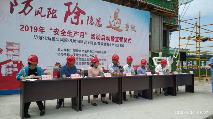 今年6月是全国第18个“安全生产月”,按照安徽建工集团公司统一部署,在全公司范围内开展“安全生产月”活动。安徽交航“安全生产月”活动启动仪式暨宣誓仪式在黄山龙骏家园项目施工现场顺利举行,由交航公司副总经理、总工程师刘朝发、纪委书记、工会主席李杨、财务总监程慧、工管部主任、生产总调度周和友、安全监察部主任朱云珍、黄山项目负责人李阳及安全监察部所属各项目安全员出席参加。
