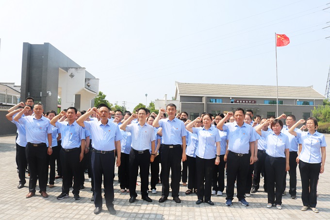 在渡江战役总前委旧址前,公司党委书记李世龙带领大家重温入党誓词,“我志愿加入中国共产党,拥护党的纲领,遵守党的章程……”,党员同志们举起右手庄严宣誓,整齐有力的宣誓声,充分表达了对革命先烈的崇敬之情,进一步激发广大党员干部的干事创业热情。