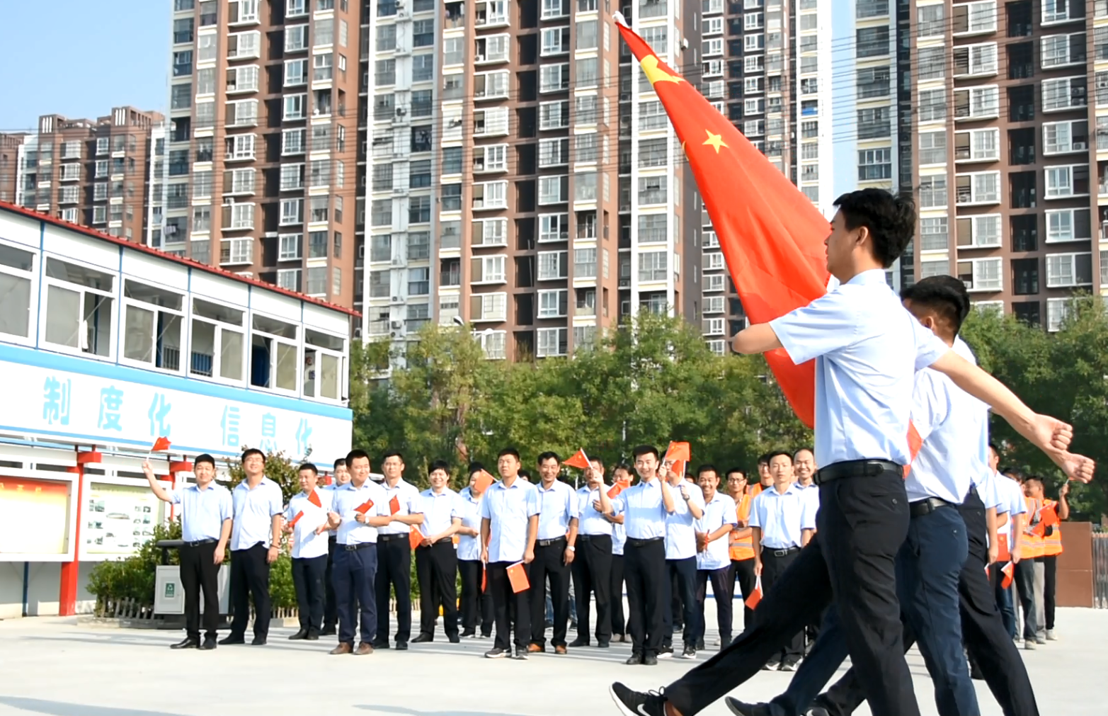 为庆祝中华人民共和国70周年,进一步加强爱国主义教育,增强项目员工民族责任感和集体荣誉感,巩固“不忘初心、牢记使命”主题教育成果,教育引导项目员工坚定理想信念,奋发进取,2019年9月30日,蒙城项目举行了“迎国庆、升国旗”仪式。