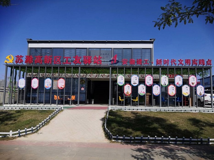 在观摩过程中,时代樾府项目经理田龙对施工现场的安全管理、文明施工、临时用电、喷淋洒水降尘系统、定型化临边防护、体验式安全培训基地、样板引路展示区、二维码技术应用等向观摩人员作一一介绍。特别是项目在新时代背景下建立的“安徽建工·新时代文明实践点”,本着服务工友的工作思路,设置了便民中心、教育培训中心、休闲娱乐及篮球场、羽毛球场等设施,并不定期提供免费的理发、缝补衣物、体检、网络、茶水等服务,给观摩人员留下深刻印象。