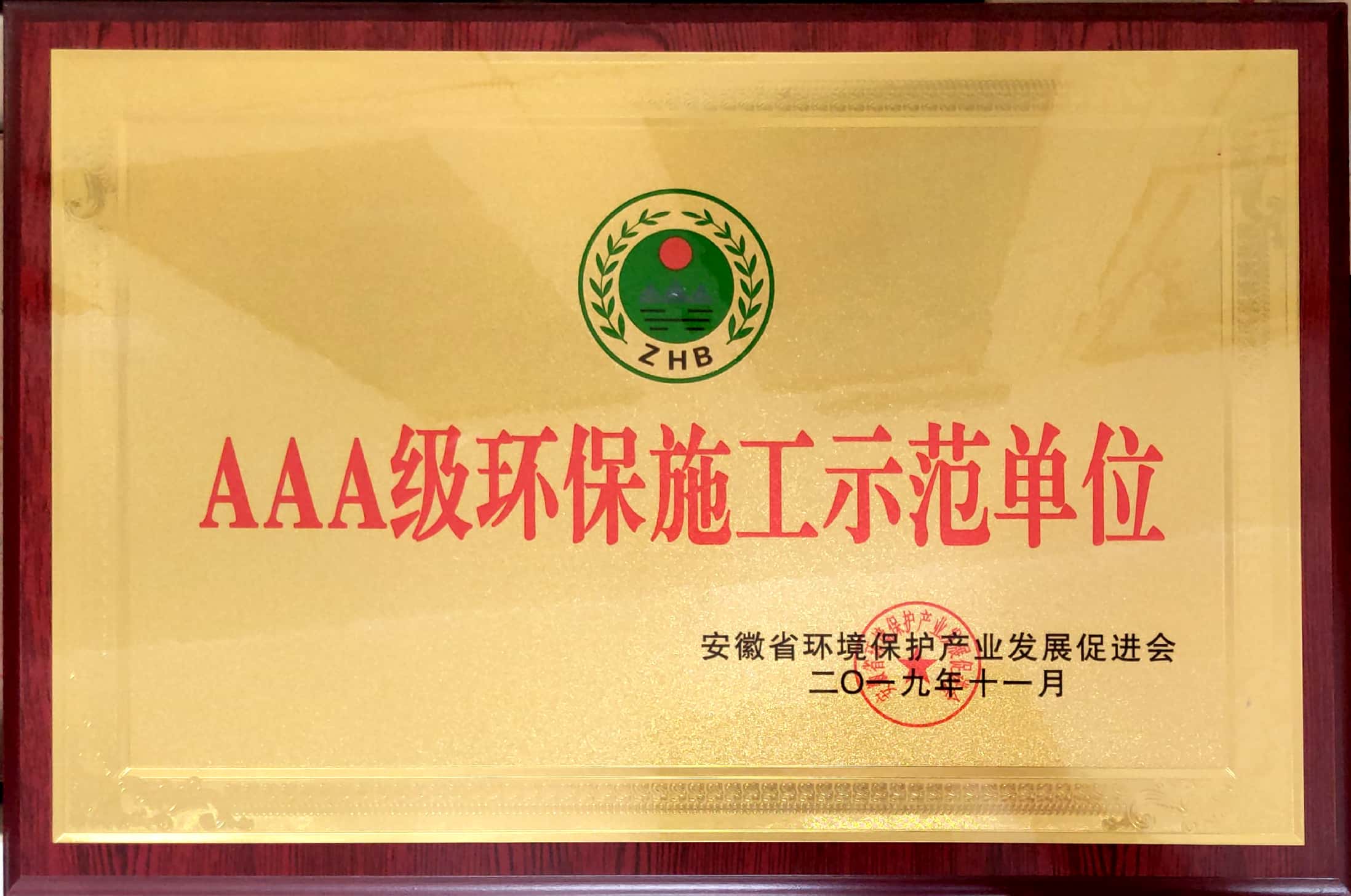 近日,安徽交航公司被安徽省环境保护产业发展促进会评为“AAA级环保施工示范单位”。