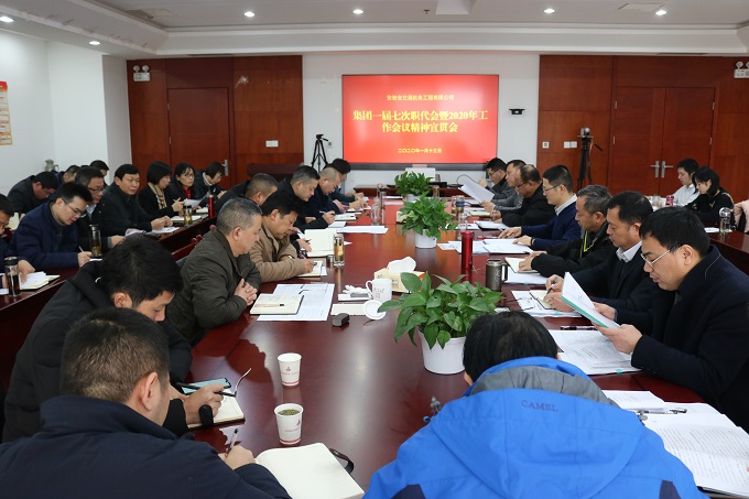 1月13日上午,安徽交航公司党委在公司一月份第二次周例会前,组织召开了集团一届七次职代会暨2020年工作会议精神宣贯会。公司党委副书记、总经理方申柱主持会议,公司党政领导班子成员、机关各部室负责人、各子分公司负责人、各项目经理参加会议。