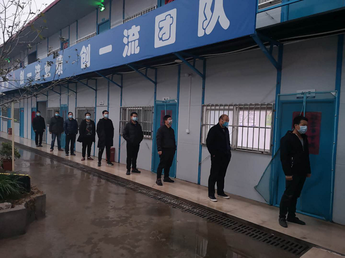 不忘初心、牢记使命。在这场没有硝烟的疫情防控阻击战争中,项目部管理人员定将坚守岗位,恪尽职守,始终坚持在防控一线,将返工工人的健康放在首位、护在身后,确保了工人的生命安全和项目部复工的平稳进行。