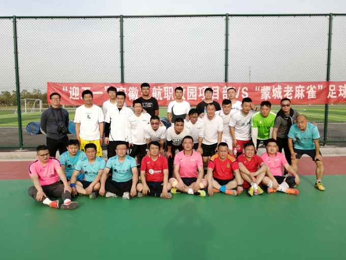 4月25日,安徽交航承建的蒙城职教园足球场热闹非凡。为庆祝“五一”国际劳动节、喜迎“五四”青年节,安徽交航蒙城职教园项目部和蒙城“老麻雀”足球队举行了一场精彩的足球友谊赛。