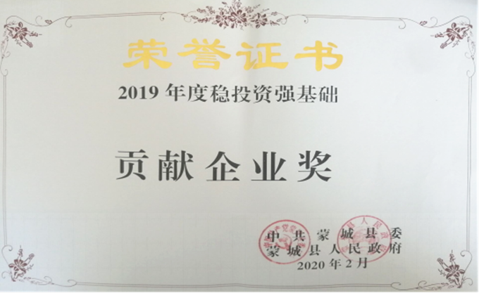 近日,蒙城县委、县政府印发《关于2019年度全县综合考评结果的通报》,根据蒙城县委、县政府综合考核评比,安徽交航公司荣获“2019年度稳投资强基础贡献企业奖”。