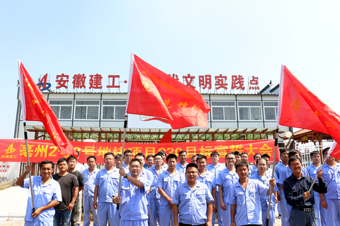 “我宣誓,作为一名参建者,在930目标任务面前绝不后退,勇敢前行,服从指挥,听从号令,坚守岗位,保证完成930抢工任务,以实际行动向亳州市民交上一份满意的答卷。”9月11日,在亳州2号3号地块项目新时代文明实践点,一批长期奋战在一线的党员、青年突击队员、各合作单位施工人员及工人手握拳头,庄严地宣读铿锵誓言,掀起了亳州2号3号地块项目2号地块“抢工大干攻坚战”的新高潮。