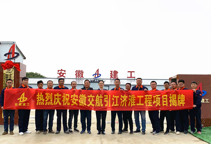 11月20日上午11时18分,安徽交航引江济淮工程(安徽段)巢湖湖区航道及派河口服务区工程项目部举行揭牌仪式。公司党委副书记、总经理方申柱,党委委员、总经理助理董双武一行参加仪式。