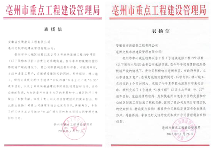 回眸过去,使命在肩。自成立以来,项目部积极探索“党建+生产”模式,特别是2020年初疫情爆发、年中洪涝灾害严重、年末环保管控的严峻情势下,面对业主单位的“630”节点目标任务以及“930”节点目标任务,全体党员干部冲锋在前,有力地推动了项目生产及各项目标任务的完成。在抢工大干期间,项目部组织开展了“战疫情、抢工期、保目标、促超产”劳动竞赛,项目产值不断刷新交航纪录,实现单周最高完成产值1.12亿,单月最高完成产值2亿元,单季度最高完成产值6.69亿元的骄人成绩,得到了业主单位及亳州市委市政府的好评,两次重要节点都获得了亳州市重点工程建设管理局的表扬信。截至12月底,项目部已完成全部产值任务的80%左右。