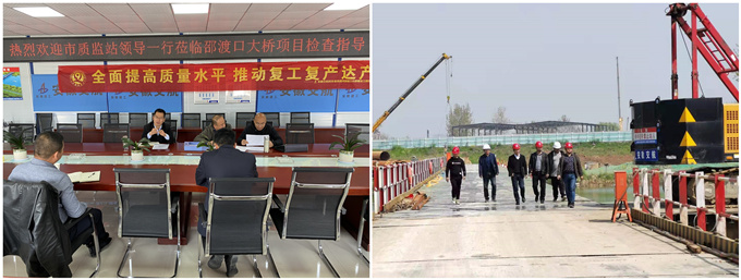 4月8日上午,亳州市交通基本建设工程质量监督局马洪刚一行到西淝河邵渡口大桥项目开展安全生产隐患排查工作。三公司经理潘家奎、项目执行经理张功印及监理单位代表等参加检查。