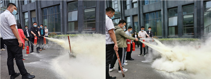 培训结束后,公司组织职工在一楼西侧广场开展消防应急救援演练活动。