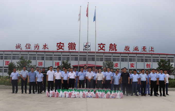 随后,牛曙东一行深入利辛县西淝河邵渡口大桥项目现场实地查看项目建设情况,看望慰问奋战在施工现场一线的项目管理人员,并现场亲自发放了防暑降温物品,嘱咐他们要注意高温期间的安全生产和防暑降温工作。在项目部会议室座谈交流中,牛曙东听取了公司党委书记、董事长方申柱汇报的安徽交航目前经济指标完成、“1133”发展目标、“54321”发展战略以及党建工作等方面情况,并对安徽交航当前工作给予了充分肯定。