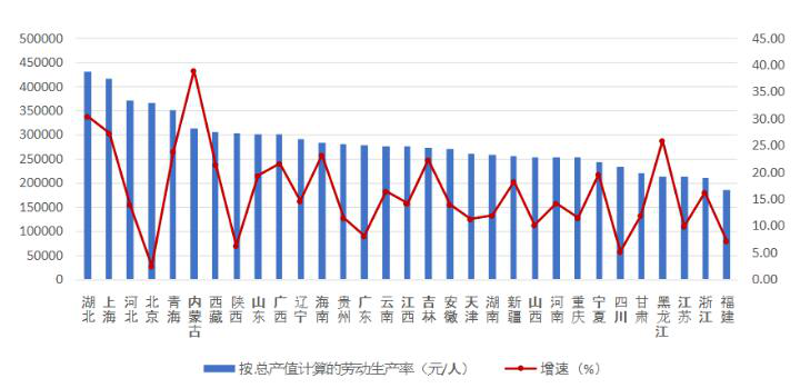 2021年上半年,各地区按建筑业总产值计算的劳动生产率均保持增长。劳动生产率排序前三位的地区是湖北、上海、河北,分别为432475元/人、416370元/人、371176元/人。劳动生产率增幅超过15%的是内蒙古、湖北、上海、黑龙江、青海、海南、吉林、广西、西藏、宁夏、山东、新疆、云南、浙江等14个地区(图6)。