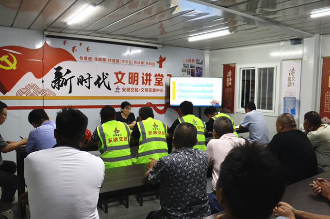 8月26日晚,公司安全监察部主任朱云珍在引江济淮项目新时代文明实践点为项目施工班组人员进行了安全教育培训。