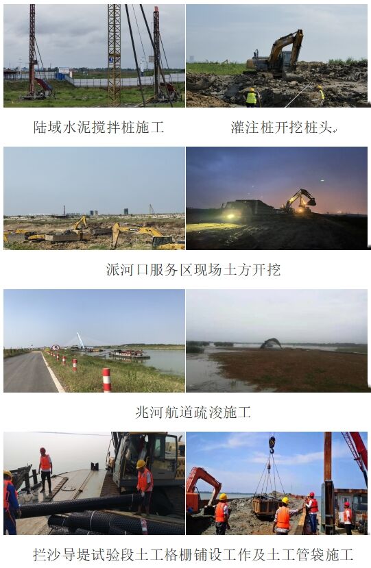 目前,引江济淮项目派河口服务区按照计划已完成多项工作,派河航道疏浚工作也已于9月7日正式开始,目前正在有序推进。兆河航道疏浚土方开挖已完成110万方,兆河航道拦沙导堤试验段已完成土工格栅铺设工作并完成土工管袋施工1000方。本年度,项目累计完成产值约8000万元。接下来,项目党支部将继续聚焦进度,充分发挥党建引领作用,持续助推公司高质量发展。