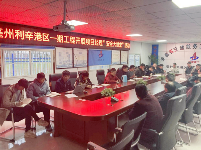 为深入学习宣传、贯彻落实《新安全生产法》,进一步提高员工安全生产的法律责任和安全意识,11月7日,利辛港区项目部利用下雨空闲时间,组织开展了一场以“贯彻落实《新安全生产法》,建立健全安全生产责任制”为主题的项目经理安全大讲堂活动。本次安全教育讲堂由项目经理叶宏作为主讲人,共有10余名青年员工和各施工班组代表参加了讲座。