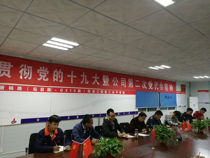 为把党的十九大及公司党代会精神落到实处,让项目员工深刻领会项目工作的开展要和党的思想引领紧密结合起来,坚定信心,牢记使命,11月3日,萧杨路项目组织召开专题会议学习贯彻党的十九大及公司党代会精神,助力施工生产。