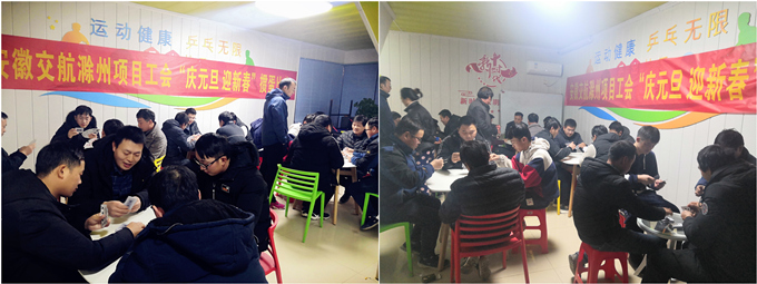 室外天寒地冻,室内喜气洋洋。为庆祝元旦、喜迎新年,营造和谐、团结、欢乐的节日氛围,丰富职工的业余文化生活,12月31日下午,滁州项目工会组织员工在安徽建工新时代文明实践点,开展“庆元旦 迎新春”掼蛋比赛活动。