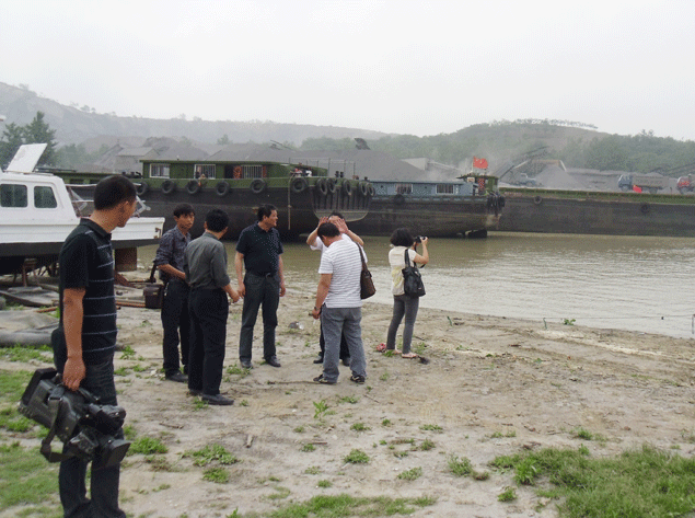 2013年5月23日,全椒县电视台记者在县交通局副局长刘汉高、海事处处长李荣福的带领下来我公司滁河航道疏浚工程现场采访,公司工会主席王永来、项目部技术负责人刘浩然陪同采访。