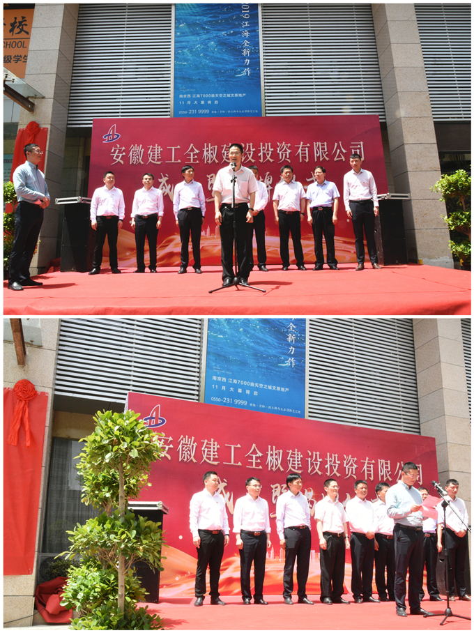 揭牌仪式由县政办副主任巫再东主持,副县长陈劲松,安徽交航财务总监、全椒建投公司董事长高伟,安徽建工全椒建投公司总经理徐华磊在仪式上分别致辞。县住建局局长张胜荣,县交通局局长袁长青、全椒全瑞集团董事长、全椒建投公司副董事长蒋今朝、全椒建投副总经理兼总工程师陈晨等出席仪式。