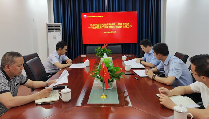 6月25日上午,公司党委副书记、总经理杜海峰到安徽建工全椒建投公司调研指导工作并举行座谈会。公司生产总调度、工程管理部主任周和友,全椒建投公司总经理徐华磊等参加调研。