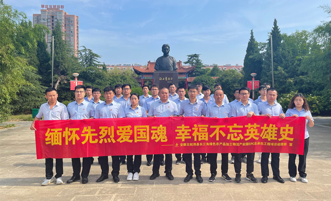 为深入推进党史学习教育,教育与引导项目党员同志及青年同志向先烈学习,6月20日上午,泗县长三角产业园项目党支部组织党员及青年职工到泗县烈士陵园开展“缅怀忠烈爱国魂、幸福不忘英雄史”主题活动。