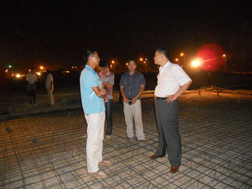 李总一行乘着夜色检查施工现场,公司总经理助理、滁州市政务中心广场项目部经理方申柱详细汇报了工程施工进度、质量安全措施情况,李总对项目部采取的一系列促进工程进度及质量安全措施表示肯定,鼓励项目部全体员工突出质量意识,加强队伍建设,牢牢把握安全生产,和谐稳定等五个关键点。希望大家团结一心,继续努力,真抓实干,作好各项工作,在即将到来的“中秋”、“国庆”双节,以优异的成绩体现公司精神风貌。
