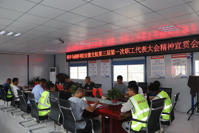 5月23日下午6点,利辛县S247马胡桥项目部组织全体职工召开安徽交航三届一次职代会精神宣贯暨“大干40天”劳动竞赛动员专题会议。会上认真传达学习了党委副书记、总经理方申柱作的职代会报告,让未参加职代会的同事了解交航公司过去一年的发展情况以及未来企业发展规划。