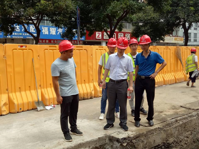 8月15日,安徽交航公司党委副书记、总经理方申柱,党委委员、总经理助理、蒙城交投公司董事长邵佳一行莅临淮北市雨污分流项目指导工作。方总一行驱车赶往施工现场视察工作开展情况,对施工现场安全文明、质量控制、施工进度等提出关键建议和整改要求。