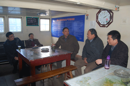 随后,李总一行又不辞辛劳地来到在涡河施工的第七工程处,与船队职工亲切交谈,就当前施工重点、难点进行分析、整理,现场解决当前存在的问题,也为下一步的工作指明了方向。