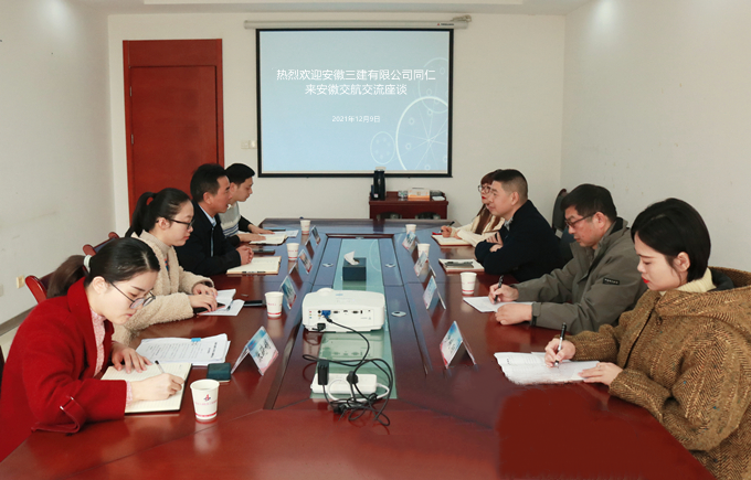 12月9日上午,安徽三建人力资源副主任王辉、郭长宏一行到访安徽交航。公司党委副书记、总经理杜海峰在会议室热情接待来访客人,双方就人力资源管理工作进行深入座谈交流。