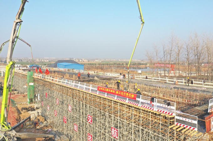 12月23日3点54分,随着汽车泵臂架的回收,标志着利辛邵渡口大桥项目5-8#跨堤桥(30+40+30)m现浇等高连续大箱梁首次760m³混凝土浇筑顺利完成。