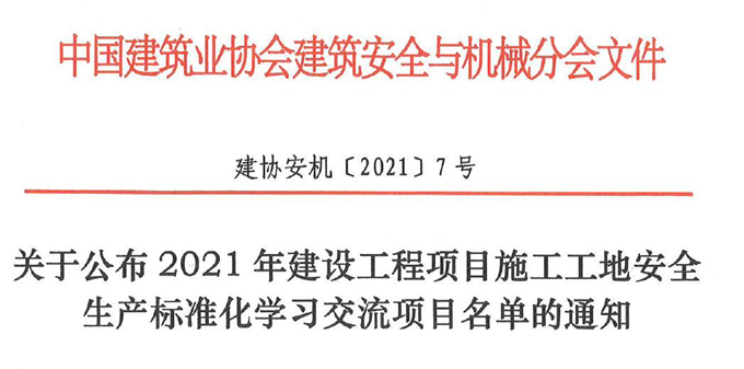 近日,中国建筑业协会建筑安全与机械分会公布了2021年在全国范围组织学习交流的建设工程项目施工安全生产标准化工地名单,安徽交航公司承建的滁州市北京城房·时代庄园项目位列其中,获评“全国建设工程项目施工工地安全生产标准化学习交流项目”。