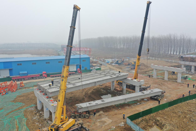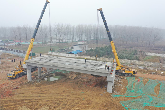 1月10日上午,利辛县西淝河邵渡口大桥引桥箱梁架设施工正式开始,随着桥北第一片箱梁的准确落位,标志着邵渡口大桥项目进入新的施工阶段。