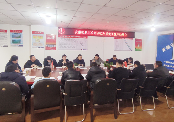 2月11日下午,三公司2022年复工复产工作动员会在肥召开。会议强调,要以“开局就是决战,起步就要冲刺”的昂扬姿态,下好先手棋、打好主动仗,以敢于担当的勇气、求真务实的行动,高效推进复工复产,为全年各项工作任务完成奠定坚实基础。分公司班子成员、各项目负责人、项目总工及部分项目职工代表参加会议。分公司党支部书记、总经理潘家奎主持会议。