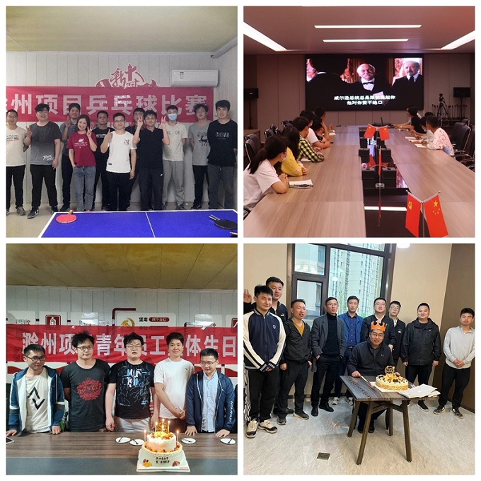 为深入开展“我为青年办实事活动”,公司所属各单位立足服务青年职工,深入开展“5帮1”活动。五一期间,三公司利辛区域联合项目、淮北项目、大墅项目组织召开青年座谈会,与青年进行一次谈心谈话,通过倾听青年心声、答疑解惑,帮助青年职工解决工作生活中遇到的实际问题;5月2日,滁州项目组织青年职工开展一场素质提升活动,通过乒乓球比赛提升了项目团队凝聚力,增强了青年职工的身体素质;5月2日,引江济淮项目组织青年开展一次红色教育,集中组织观看了以巴黎和会为背景的爱国电影《我的1919》,引导团员青年不忘初心、努力奋斗;5月4日前夕,甘肃、滁州项目为青年职工过一次生日,通过青年职工集体生日会,营造了团结、和谐的项目氛围;5月4日前夕,引江济淮、泗县、淮北、利辛区域联合、滁州等项目为青年职工上一堂主题团课。