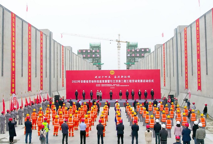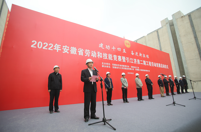 5月11日上午,由安徽省劳动竞赛委员会、安徽省总工会主办,安徽建工集团控股有限公司、安徽省引江济淮集团有限公司承办的2022年安徽省劳动和技能竞赛暨引江济淮二期工程劳动竞赛启动仪式在安徽省路港工程有限责任公司承建的引江济淮工程派河口船闸项目现场举行。