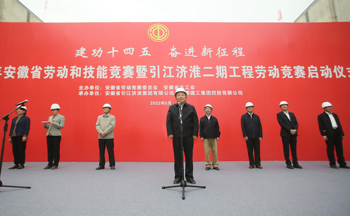 省人大常委会党组副书记、副主任,省总工会主席宋国权宣布竞赛启动,省劳动竞赛委员会副主任、省总工会党组书记、副主席徐发成作竞赛动员讲话。省发改委一级巡视员、省引江济淮办公室主任胡再生,安徽建工集团控股有限公司党委书记、董事长赵时运分别致辞。