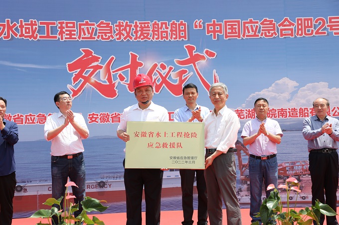 5月23日上午11时18分,伴随着船舶隆隆的汽笛声,在隆重的交付仪式中,中国首艘水域工程应急救援船舶“中国应急合肥2号”正式入列安徽交航应急救援基地。安徽省应急管理厅一级巡视员汪黎明,建工控股副总工程师、股份公司首席信息官吴红星出席仪式。应急管理厅救援协调和预案管理处处长魏文斌、三级调研员沈磊,芜湖市应急管理局副局长程克柱,安徽省皖江船舶检验局副局长孙成岭、王其端,芜湖市皖南造船有限公司副总经理陆青松等参加上述仪式。公司党委书记、董事长方申柱主持仪式。