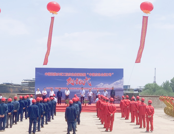 汪黎明在仪式中指出,“中国应急合肥2号”的交付入列标志着我省在提升水上工程、灾害事故、应急救援能力方面迈出了重要的一步,安徽交航作为使用管理单位,希望切实发挥省属国企的优势,认真履行安徽省水上工程抢险应急救援任务,持续提升水上工程抢险救援能力,加强队伍建设,强化作业技能训练,配齐配强应急救援装备。