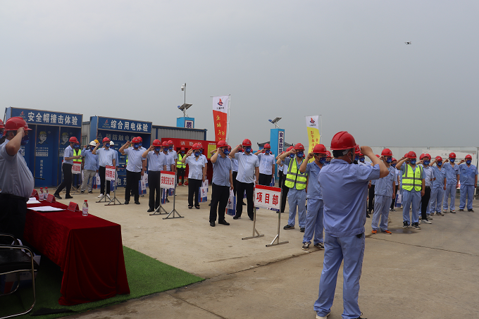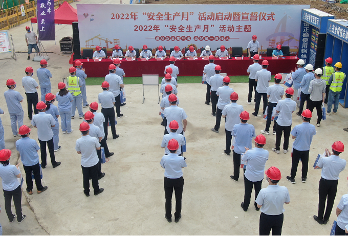 6月1日上午8点30分,安徽交航在引江济淮项目派河口服务区施工现场举行全国第21个“安全生产月”活动启动仪式,正式拉开了“安全生产月”活动的序幕。公司党委书记、董事长方申柱出席仪式并讲话,公司领导班子成员、省引江济淮集团肥西建管处副处长宋诚、天津天科工程管理公司派河口水运工程总监办项目总监罗江川出席仪式。公司党委委员、副总经理董双武主持仪式。