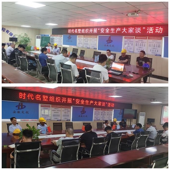 今年6月是第21个全国“安全生产月”。为了宣传贯彻“安全生产月”活动、交流安全管理工作方法和经验,6月10日,滁州时代名墅项目部组织开展“安全生产大家谈”活动。项目部全体管理人员、分包单位项目负责人及各劳务班组长参加活动。